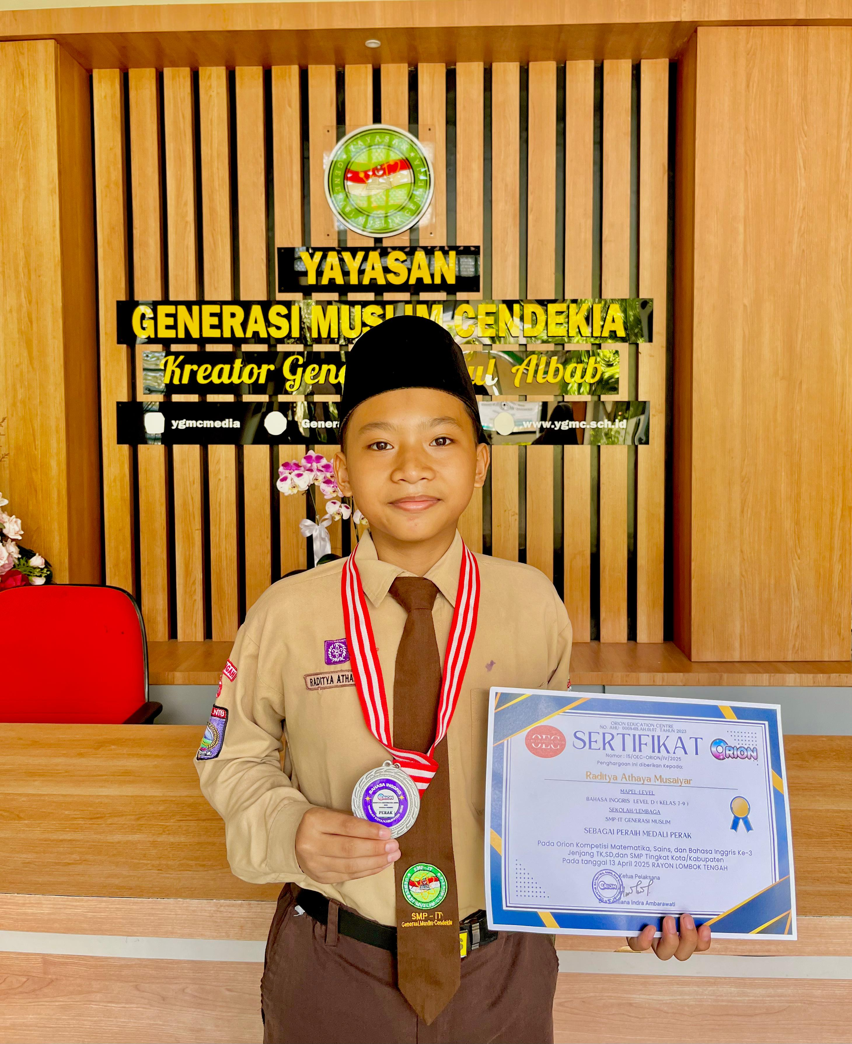 - RADITYA ATHAYA MUSAIYAR (Peraih Medali Perak Pada Orion Kompetisi Matematika & Sains & Bahasa Inggris Ke-3 Jenjang Smp Tingkat Kabupaten/Kota)